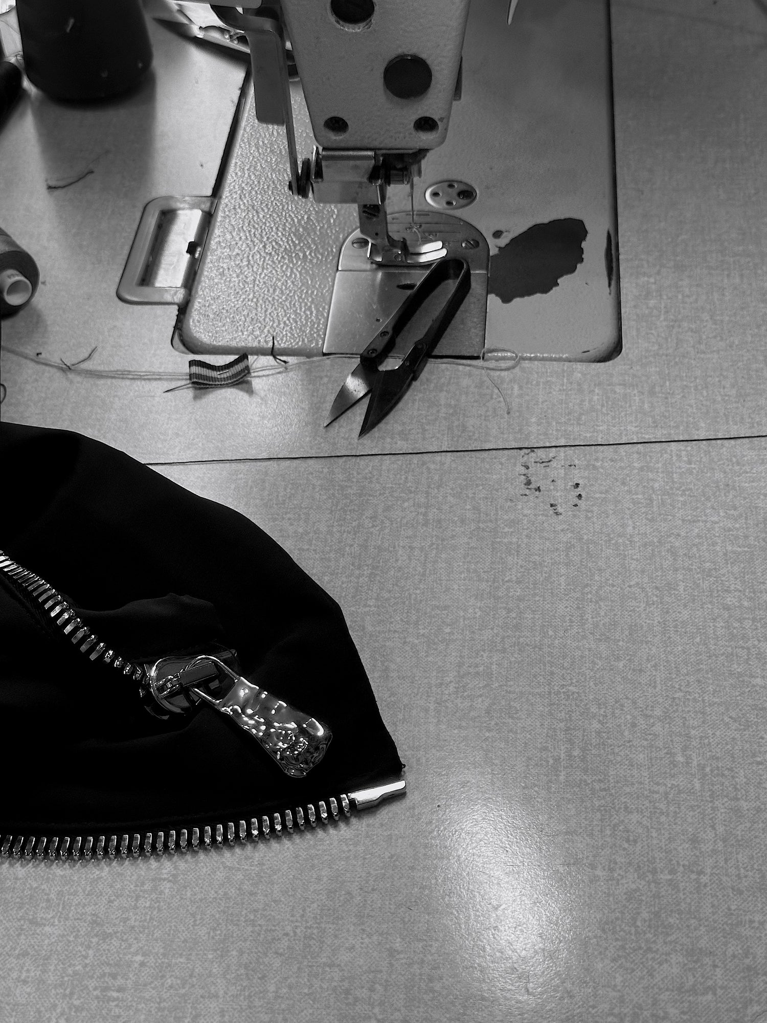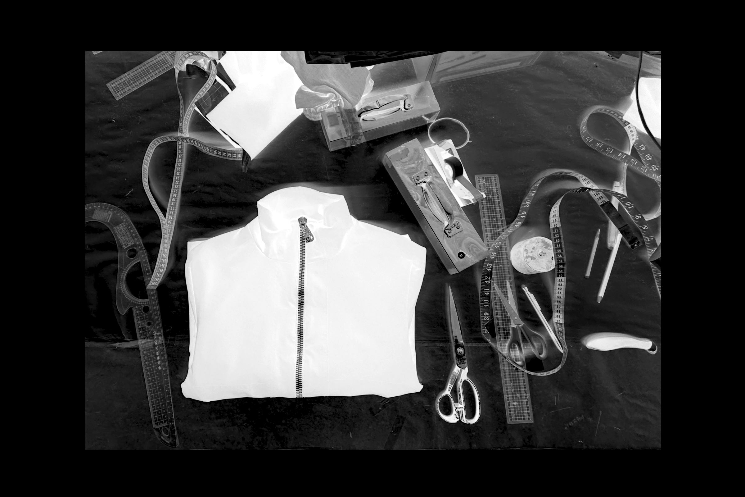 The measurements, patterns, and cuts are drawn and refined in the studio, studied with an obsessive precision until balance is found.